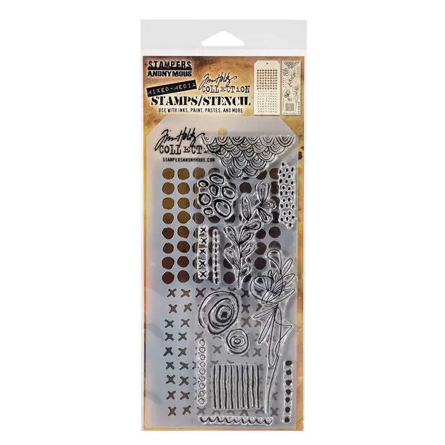 Stampers Anonymous scrapbooking rubber stamps, item Dotted and Stitched TH-THMM114. Part of the Tim Holtz mixed media clear stamp and stencil set.
