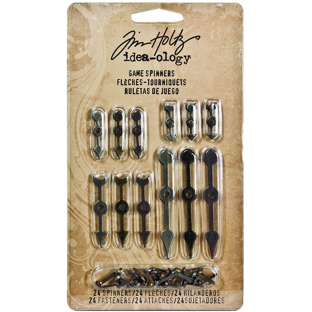 Tim Holtz scrapbooking embellishments, item Game Spinners TH-TH92717. Contains (24) spinners and (24) fastener brads. Part of the Idea-ology Collection.