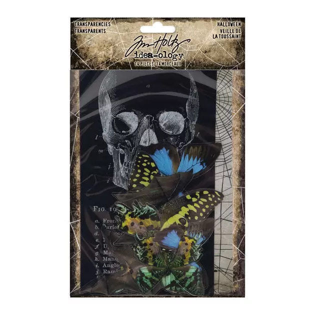 Tim Holtz scrapbooking embellishments, item Halloween Transparencies TH-TH94167. Each pack contains (14) pieces. This item is non-adhesive.