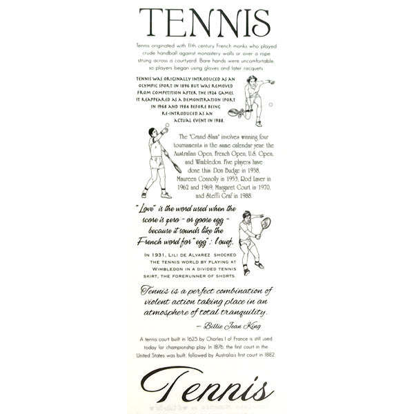 It Takes Two Timeless Moments scrapbooking sticker Tennis item ITT-Facts10. Each pack contains one 5"x12" sticker with journaling snippets of headlines, facts and fun!